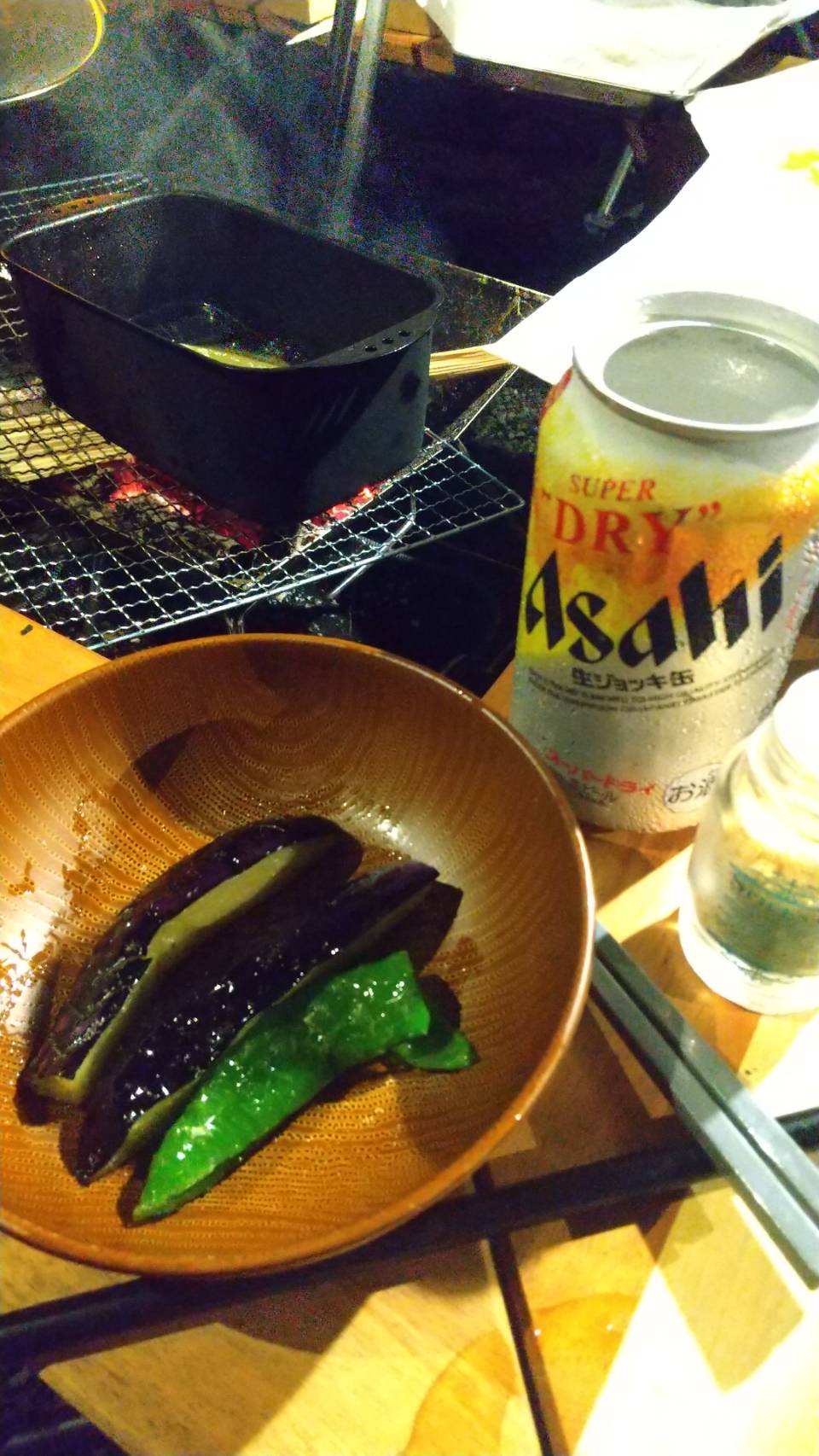 初揚げ物に挑戦。唐揚げ、ポテト、ナス・ピーマンの素揚げ、どれも揚げたてを食べれて美味しい!